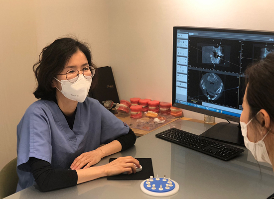웃을때마다 신경이 쓰이신다는 환자분입니다.